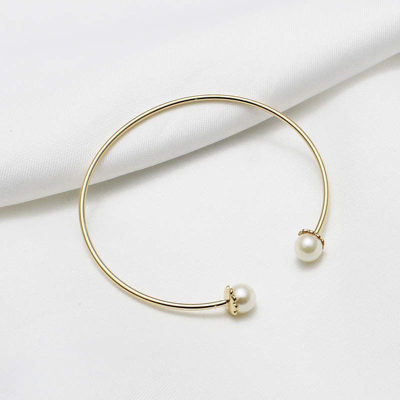 Bracelete com pérolas nas pontas e banhado em ouro 18k. 7mm de espessura.
