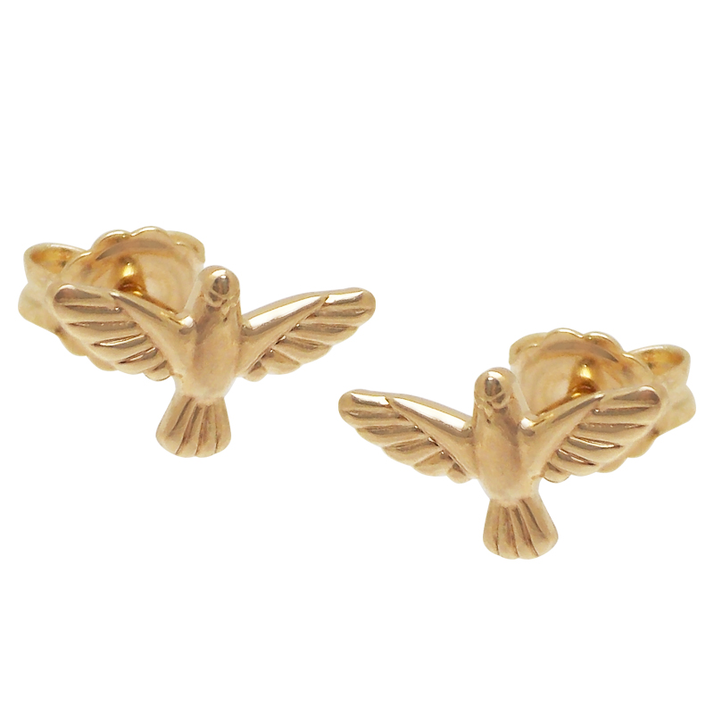 Par de brincos com formato de pomba que representa o Espírito Santo banhados em ouro 18k.