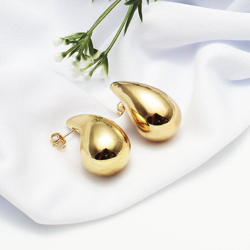 Par de brincos em formato de gota, banhado em ouro 18k e 30mm de comprimento.