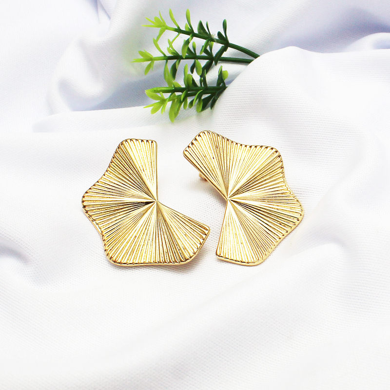 Par de brincos em formato de leque no estilo orgânico, diamantado e banhado em ouro 18k.