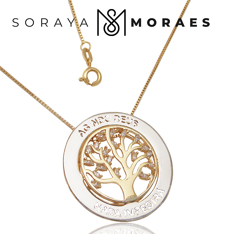 Corrente veneziana com pingente, com 50cm de extensão total e banhado com ouro 18k by Soraya Moraes. Este pingente simboliza força, crescimento e conexão com nossas raízes. Representa união familiar e amor, lembrando a importância das relações e origens. Um acessório especial para celebrar o amor familiar.