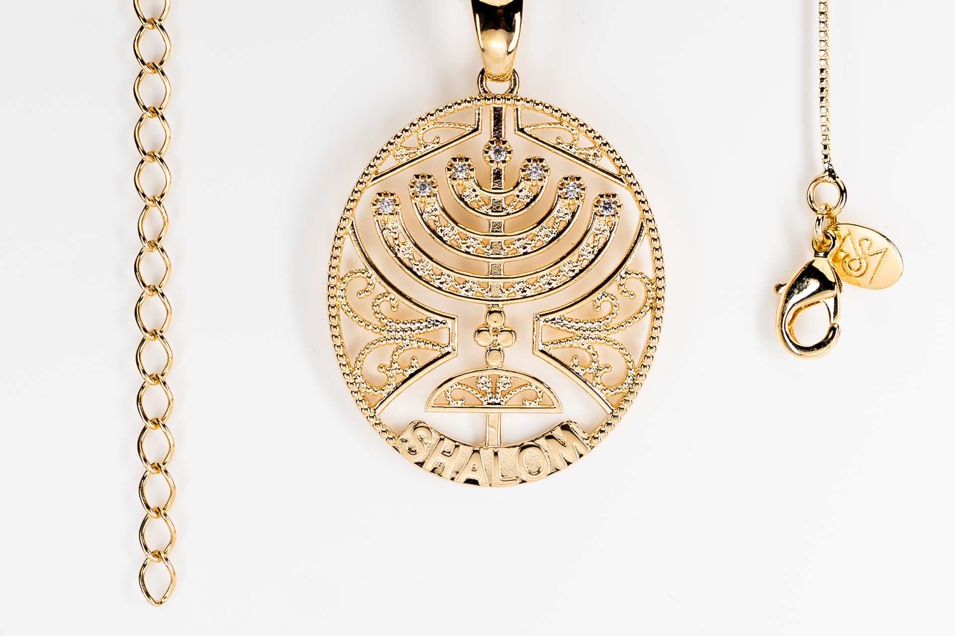 Este pingente em forma de Menorá, símbolo de luz e fé, é um lembrete da presença de Deus, inspirada em Êxodo 25:31: "Farás também uma menorá de ouro puro; de ouro batido será feita." A Menorá representa a luz divina que guia os passos dos fiéis e ilumina o caminho da salvação. Com seu brilho dourado, é uma joia que celebra a fé, a esperança e a força que vêm do Senhor. Carregue-a como um símbolo de Sua luz em sua vida. ✨🕎
