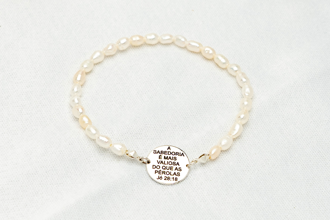 Pulseira de pérolas de água doce naturais com pingente fixo em Prata gravado com versículo bíblico Provérbios 31 by Soraya Moraes. Essa peça simboliza virtude, força e valor. Um acessório que combina elegância e fé, perfeito para mulheres que desejam expressar sua essência e espiritualidade.