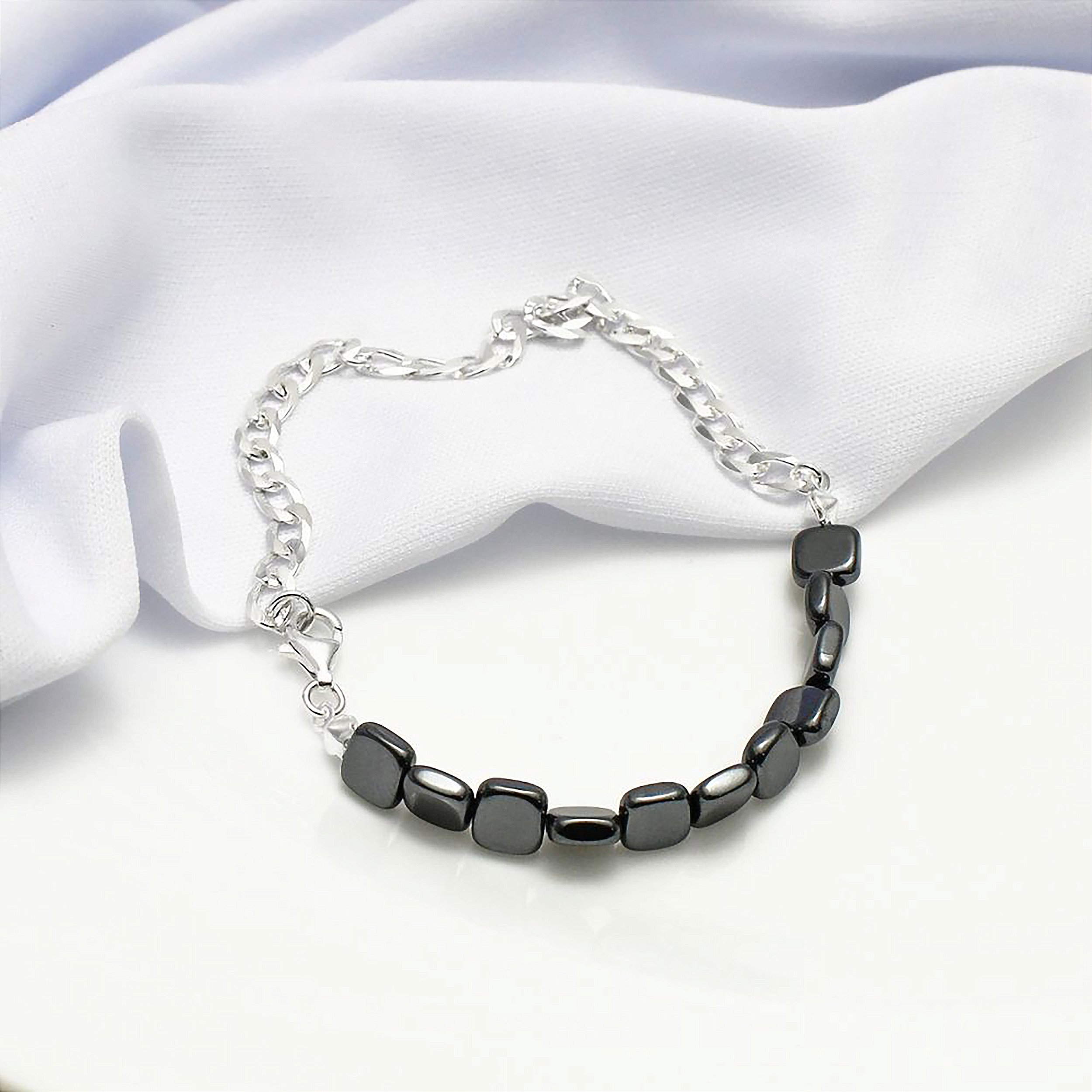 Pulseira de Prata 18cm Grume e Pedras. Uma opção estilosa e simples para homens que sabem se vestir bem.