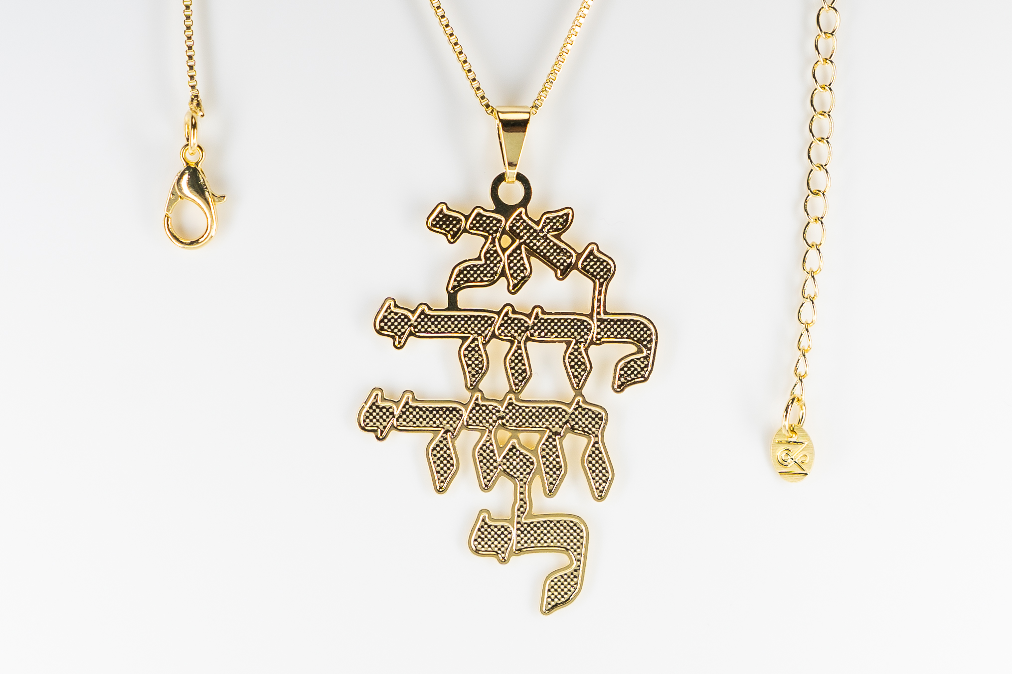 Este elegante pingente dourado traz a inscrição em hebraico “אני לדודי ודודי לי”, que significa "Eu sou do meu amado e meu amado é meu", uma frase de profunda beleza e significado, extraída do Cântico dos Cânticos 6:3. Este versículo celebra o amor eterno e incondicional entre o noivo e a noiva, representando uma aliança sagrada de compromisso e dedicação.