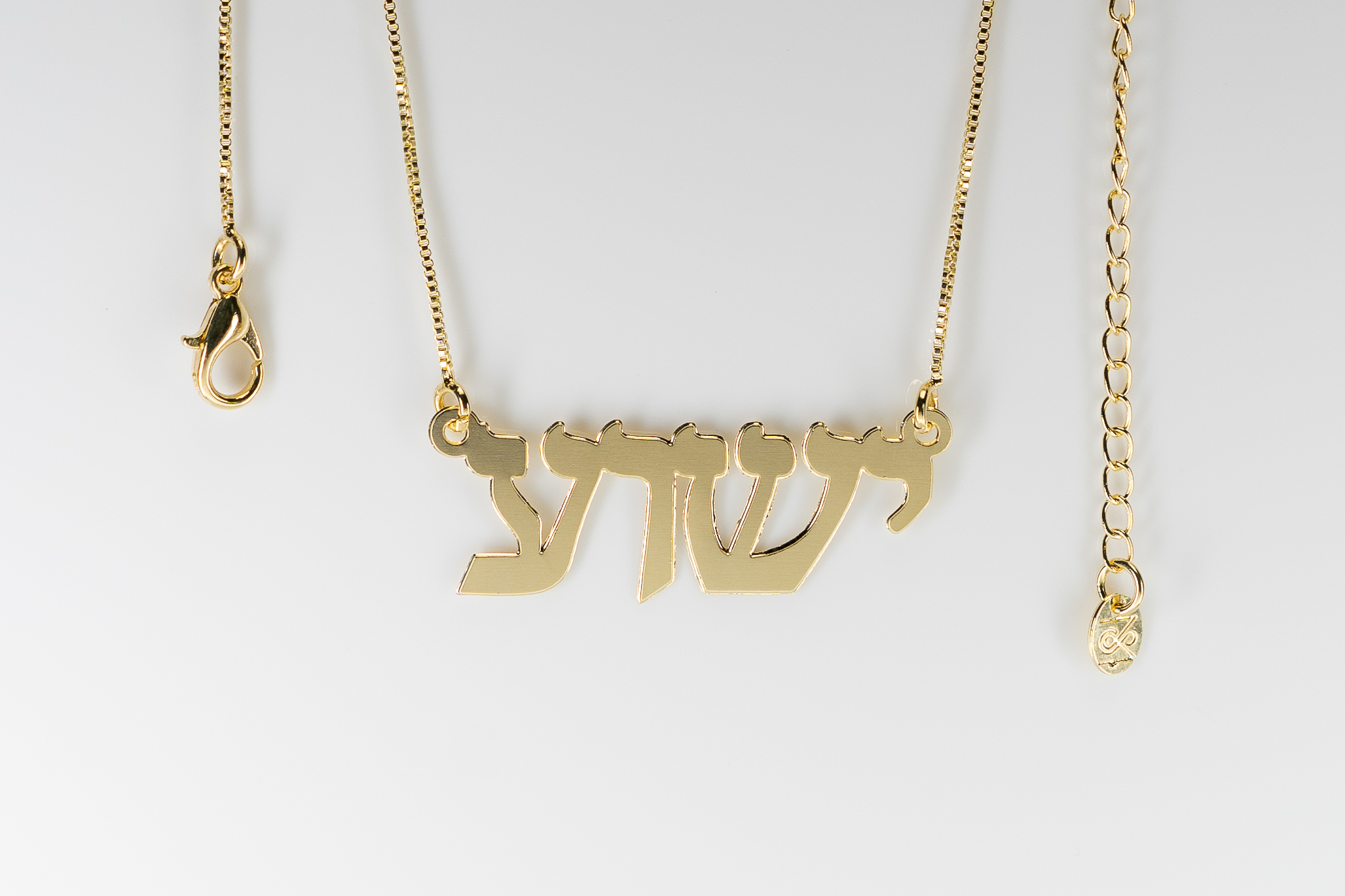 Este pingente dourado traz a inscrição em hebraico “ישוע” (Yeshua), que significa "Salvação". Yeshua é o nome dado a Jesus em hebraico, refletindo Sua missão divina de trazer salvação a toda a humanidade. Como diz em Atos 4:12: "Em nenhum outro há salvação, porque debaixo do céu não há nenhum outro nome, dado entre os homens, pelo qual devamos ser salvos."